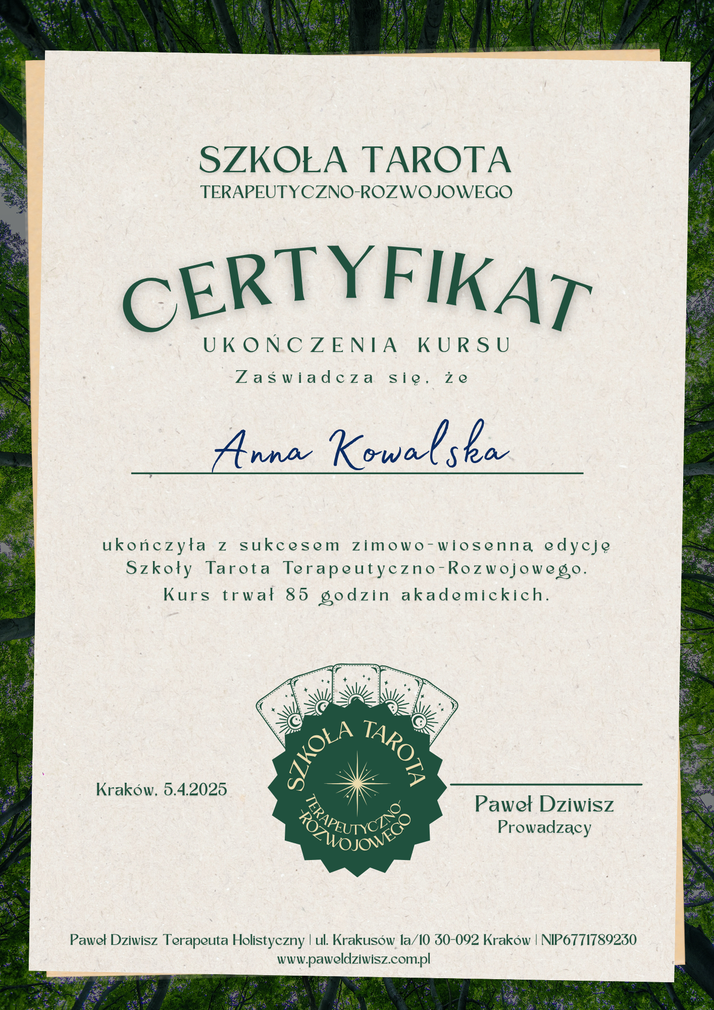 Najbliższa edycja Szkoły Tarota wiosenna odbędzie się w Krakowie. Terminy zjazdów to 14-25 marca; 11-12 kwietnia; 9-10 maja 6-7 czerwca 2026